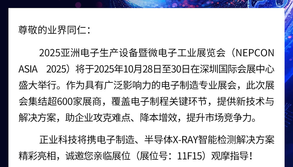 邀請(qǐng)函 | 正業(yè)科技誠(chéng)邀您相聚2025亞洲電子生產(chǎn)設(shè)備暨微電子工業(yè)展覽會(huì)